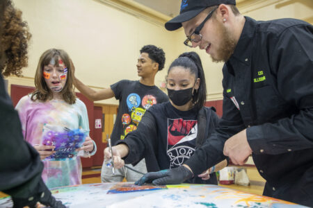 CTE students set up tables for their program – some provided interactive demonstrations such as giving students a chance to airbrush a decal on the hood of a car or hammer a nail. Others offered presentations and giveaways to excite students. The idea of bringing in highschool age students to speak with fifth- and sixth-graders was born from the pandemic, according to Wakelee.