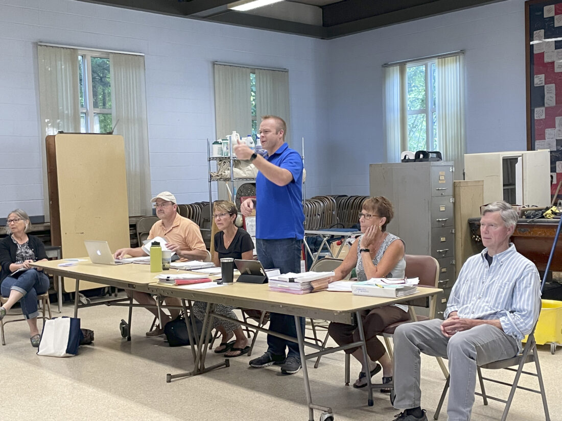 OBSERVER Photo by Gregory Bacon Ryan Burlingame stands during the zoning commission meeting Friday morning as he speaks to the audience.