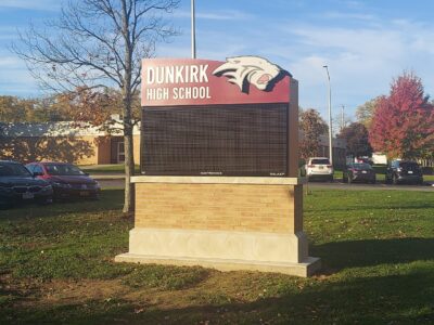 The district Board of Education approved the new signs for school buildings Jan. 11. They were approved in conjunction with a new playground near Dunkirk Middle School. The playground is still unfinished because equipment is not delivered yet.