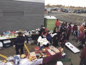 OBSERVER Photo by Craig Harvey A tailgate party outside the Orchard Park stadium got underway Saturday around 1 p.m. Hot dogs, hamburgs, baked chicken, baked beans, spanish rice, six-foot subs, cheese and pepperoni, dips and desserts were just a few of the treats which filled the many tables.