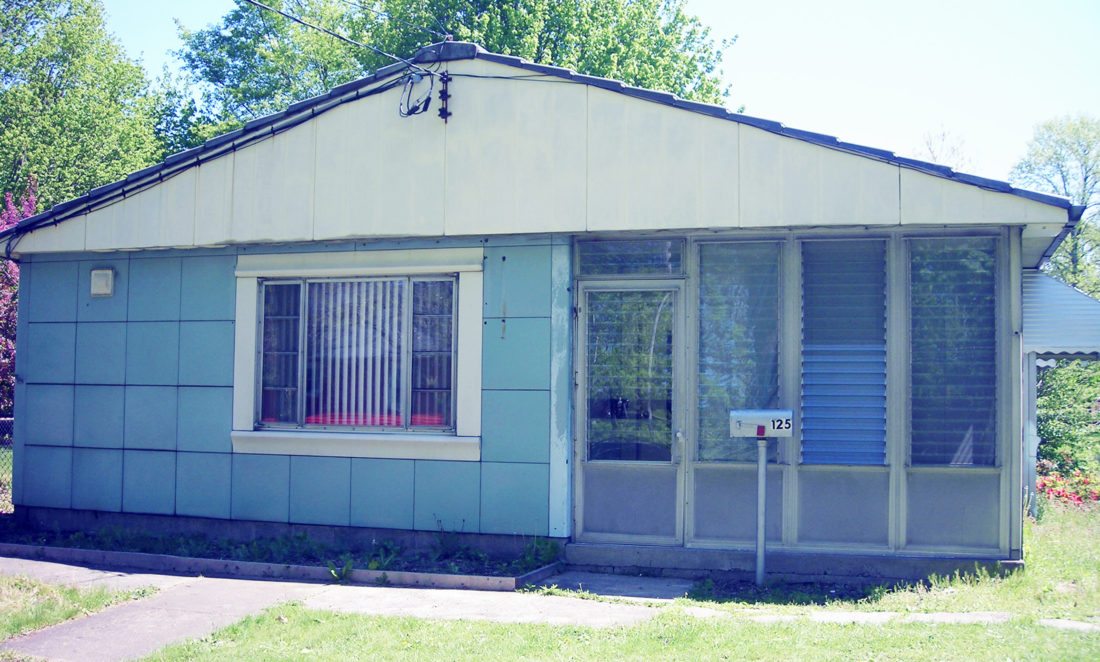 A Lustron home is constructed of porcelain-enameled steel panels bolted to a steel frame and secured to a concrete slab. There were only 2,500 of these houses built, all in the late 1940s, of which only 125 remain in existence.