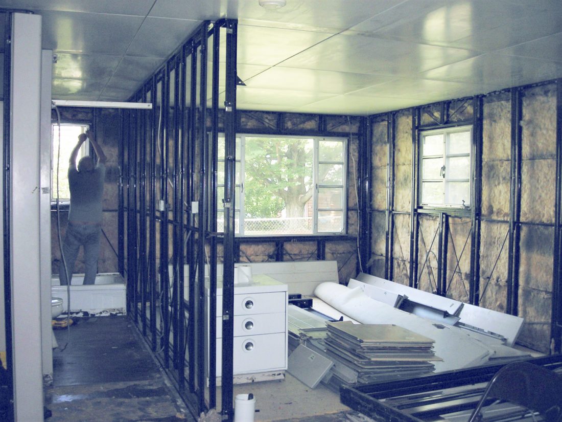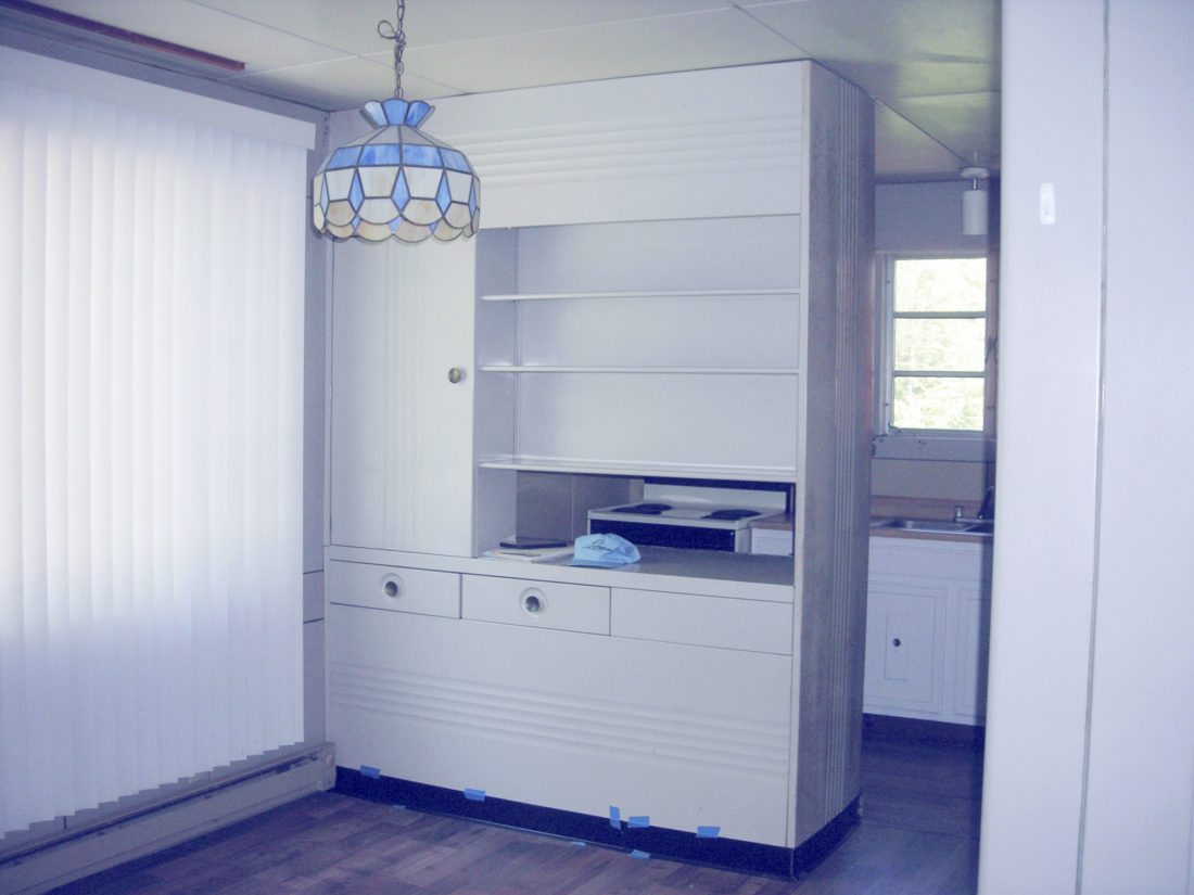 Photo by David Prenatt An interior picture of the Lustron Home before it was dismantled. It shows the porcelain-enameled panels that make up the walls.