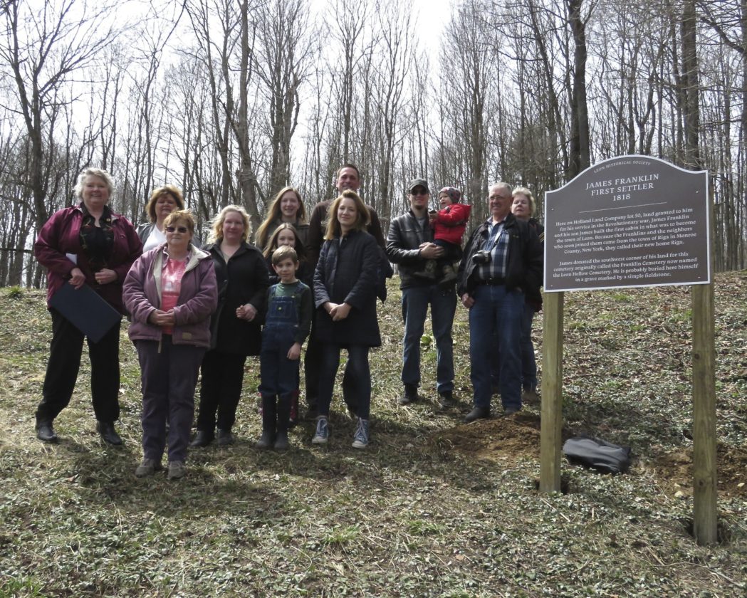 LEON — In celebration of the town of Leon’s first pioneer settler, James Franklin who arrived in 1818, the Leon Historical Society dedicated a new sign in his honor at the Leon Hollow Cemetery on April 21.