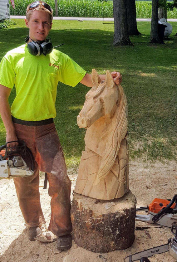 Throughout the year, Keller has donated his chainsaw carvings to such groups as a local FFA chapter, a pet rescue and even donated a hand-carved memorial bench for a student. He also donated three large carvings to the Erie County Conservancy to be raffled off during a winter festival at Chestnut Ridge Park.