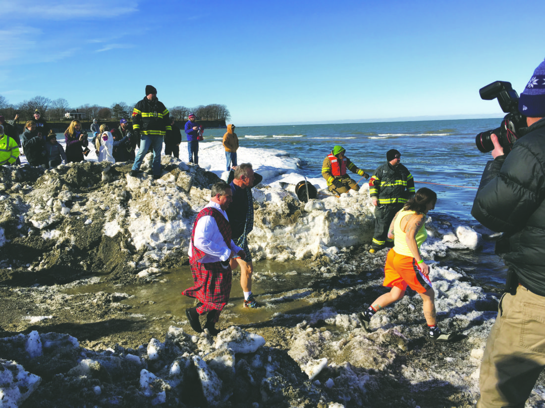 Lake Erie wasn’t frozen over, as waves lapped on the shore while the crowd waited, and the sun was out and shining bright. The wind and cold air, however, made for a chilly go of things.