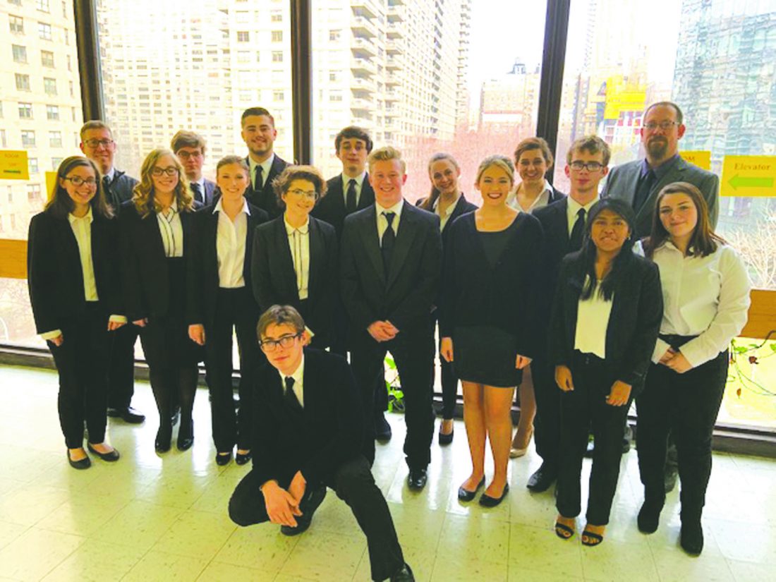 Submitted Photo Sixteen WACS seniors took part in the We The People competition in New York City. Here they are pictured with chaperones and WACS history teacher Greg Birner (back row, far right).