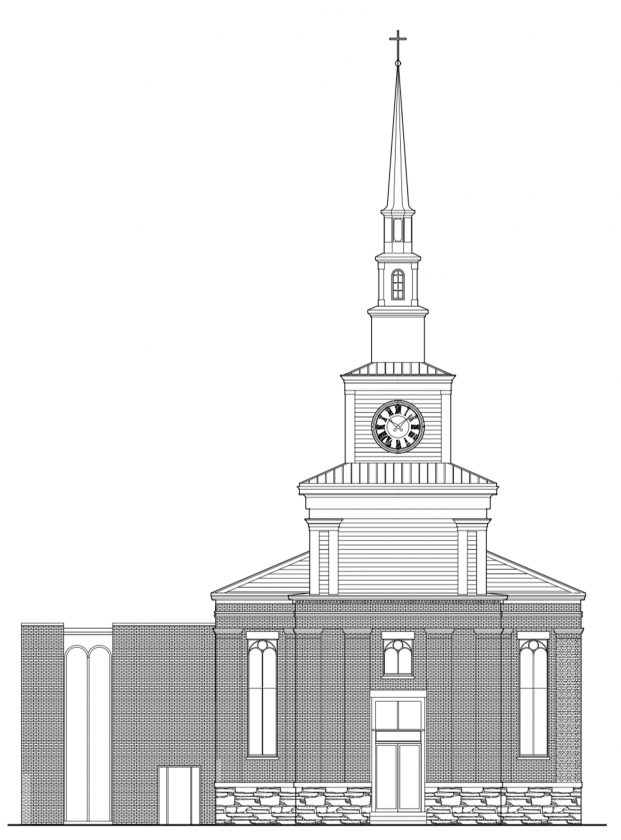 This is an architect's drawings of the new steeple and clock tower that will be installed at Family Church Fredonia.