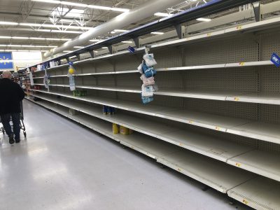 Walking the aisles of Walmart earlier this week seemed very different than a normal shopping trip. There was a sense of fear in the air, with brim-full shopping carts whizzing by and at least five people in every grocery aisle.