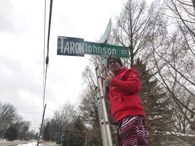 Johnson Street in Fredonia, which is right off Berry Road, has undergone an unofficial name change because of Fredonia resident Mike Rukavina. A sign with the name “Taron” has been added to the Johnson Street sign, in honor of Bills cornerback Taron Johnson who made the biggest play of Saturday’s game with a 101-yard interception returned for a touchdown in the third quarter.
