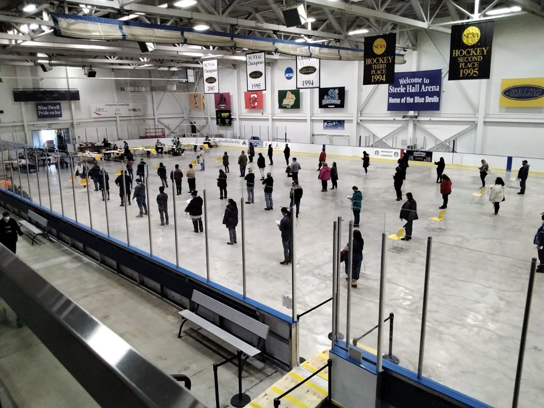 A vaccination clinic took place Monday at Steele Hall ice arena at the State University of New York at Fredonia.