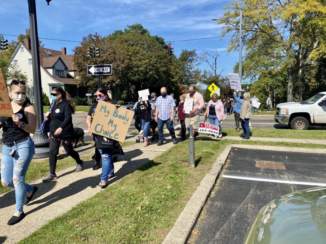 JM Rally file.jpg OBSERVER File Photo Pictured are participants in a Jamestown Women’s March held in October 2021. Two bills introduced this week would strengthen New York’s official stance as a supporter of abortion rights.