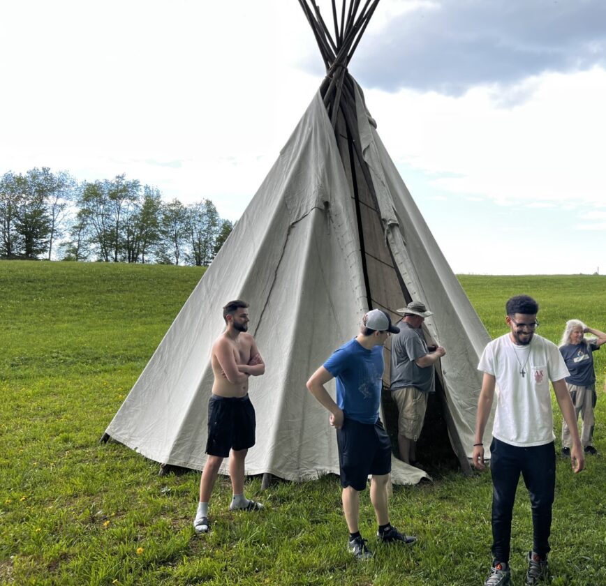 Together, the fraternity brothers, along with Jeremy Woolson of the Chautauqua Watershed Conservancy, constructed a 22-foot tipi that will be used for experiential environmental lessons at Greystone Nature Preserve.