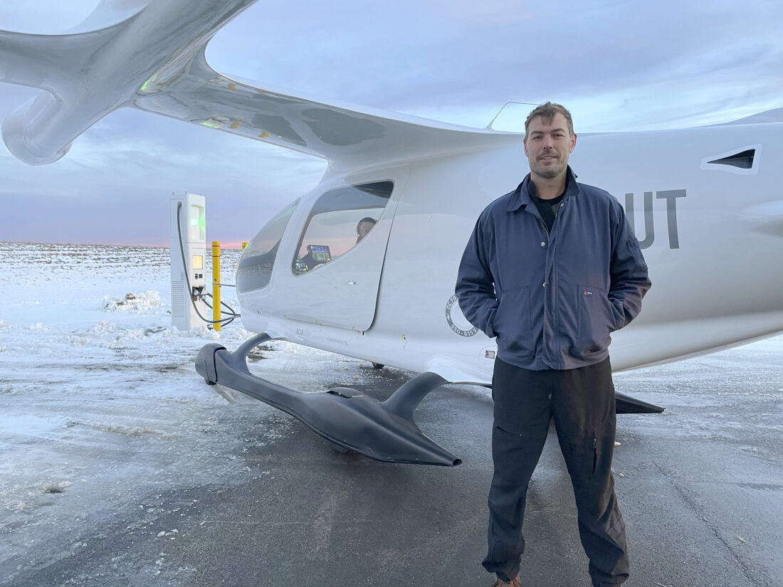 On Wednesday night, Kyle Clark, founder and CEO of Beta Technologies, flew his electric 7,000 pound fixed-wing aircraft into the Jamestown airport so it could be charged and fly out in the morning.