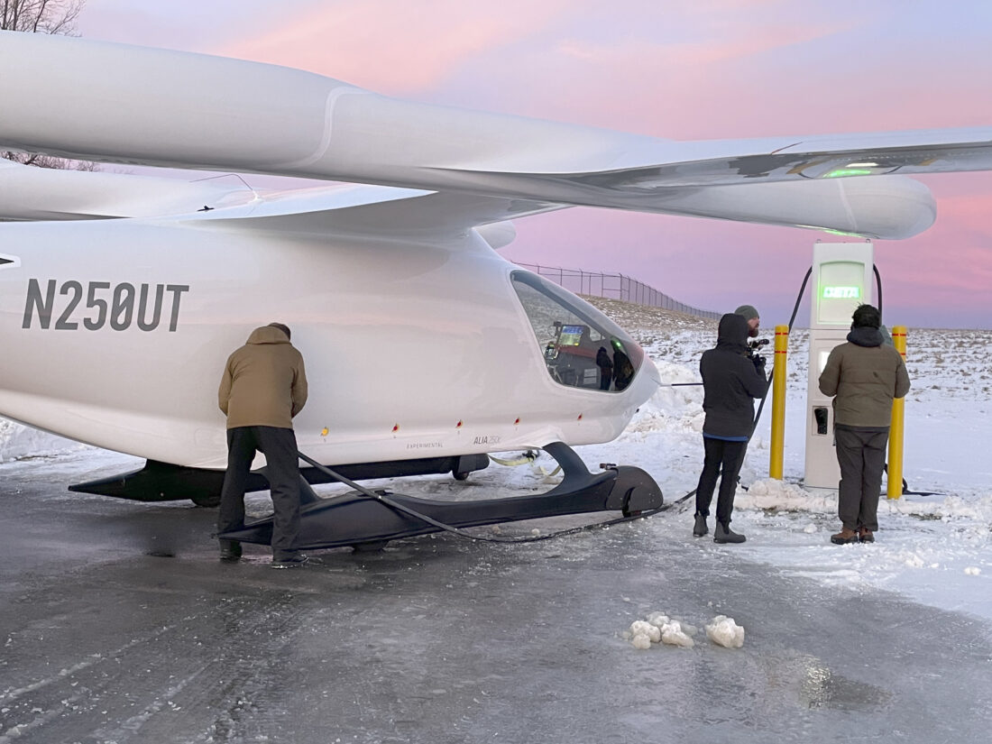 - Individuals with Beta Technologies charge up their plane Wednesday night so it could be flown again to Saranac Lake, as part of test flights for the aircraft.