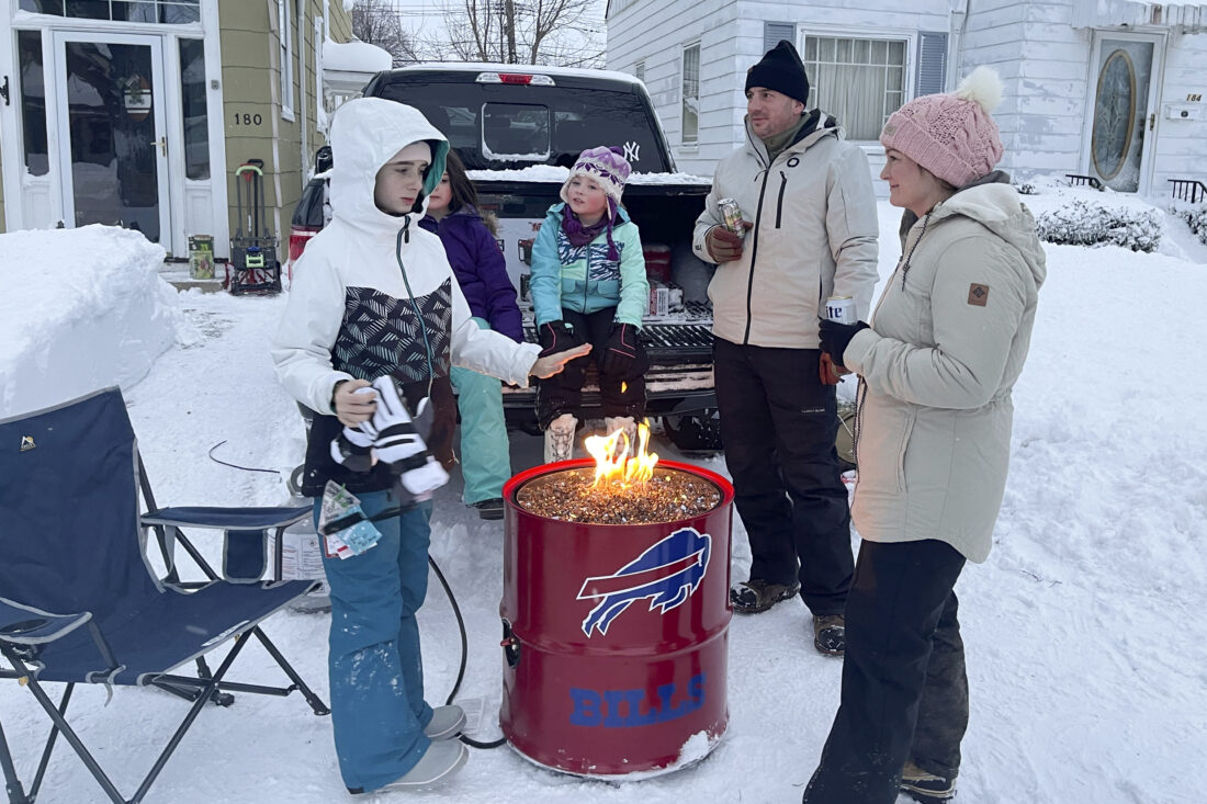 AP Photo A group of neighbors gather around a fire pit on Culver Road after clearing snow in Buffalo, N.Y., Monday, Dec. 26, 2022.
