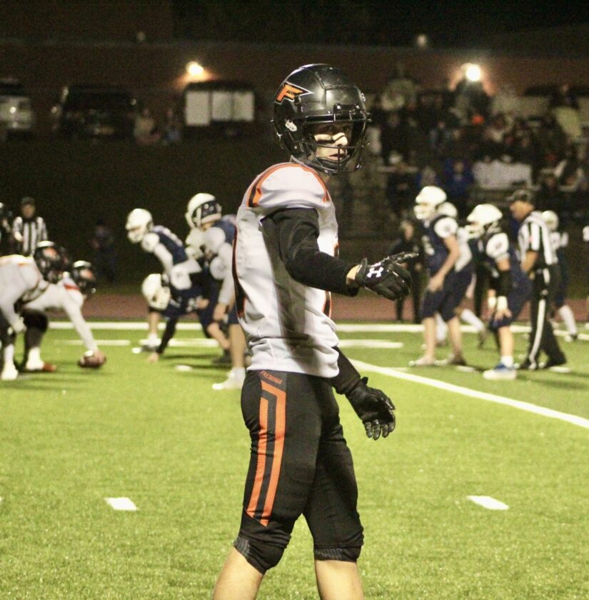 OBSERVER Photo by Braden Carmen Fredonia wide receiver Jay Hawk is shown lining up before a play during a football game at Chautauqua Lake this past fall.