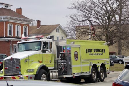 Fire trucks from both East Dunkirk and West Dunkirk could be seen on Central Avenue on Friday morning during the funeral for Dunkirk town Supervisor Richard Purol that was held at McGraw-Kowal Funeral Home. Purol, who also was a volunteer firefighter, died Monday in Brooks-TLC Hospital System. Earlier this month, Purol was in attendance to receive honors for more than 50 years of Service at the East Dunkirk Fire Department banquet.
