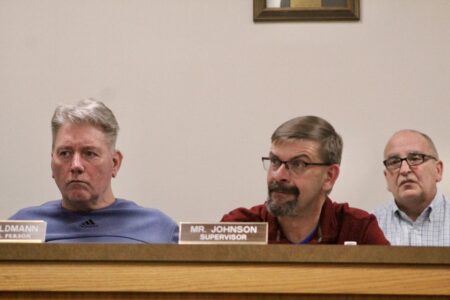 - OBSERVER Photos by Braden Carmen From left are Hanover Town Board member Bernie Feldmann, Supervisor Todd Johnson, and clerk Tim Crino listen to comments during the recent Town Board meeting.