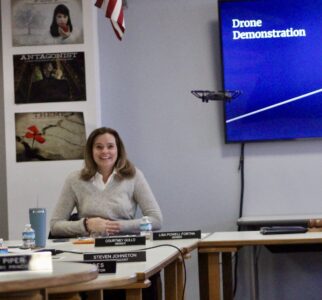 - OBSERVER Photos by Braden Carmen Fredonia Board of Education member Lisa Powell Fortna looks on as students operate a drone during a recent meeting in the school library.