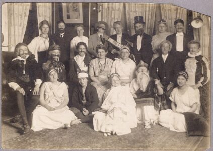 - Top row, from left: Susan Westling, Linda Dunn, Karin Seager Cockram, Lisa Mertz, Leanna McMahon, Irene Strychalski, Cheryll Rogers, Joyce Haines, Lucy Richardson, Mary Croxton. In front are: Judi Lutz-Woods, Barb Albert, Nicki Schoenl, Joan Larson, Mary Jane Covley Walker. Below is the photo from 1915.