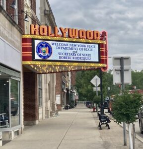 - The Hollywood Theater marquee welcomed Secretary of State Robert J. Rodriguez to Gowanda last June. OBSERVER Photo by Braden Carmen.