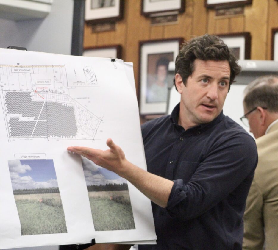 Dan Leary of Dunkirk Solar One and Solar Two presented the project to the Dunkirk Town Board at a public hearing on the project, held prior to the regular meeting of the Dunkirk Town Board. He was joined by Mike Metzger, the head of Metzger Civil Engineering.