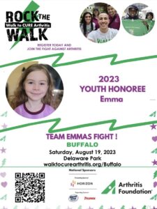 Emma Johnson, a five-year-old girl from Fredonia battling Juvenile Idiopathic Arthritis, was selected as the Youth Honoree of the 2023 Walk to Cure Arthritis, Aug. 19 at Delaware Park in Buffalo.