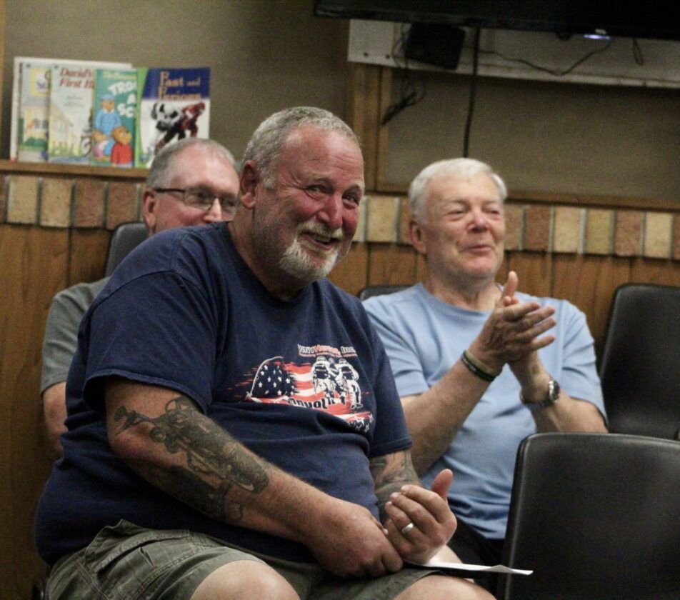 OBSERVER Photos by Braden Carmen Dunkirk resident Phil Leone and many of the members of the public in attendance celebrated as the Town Board officially approved a local law to restrict short-term rental properties in residential neighborhoods.