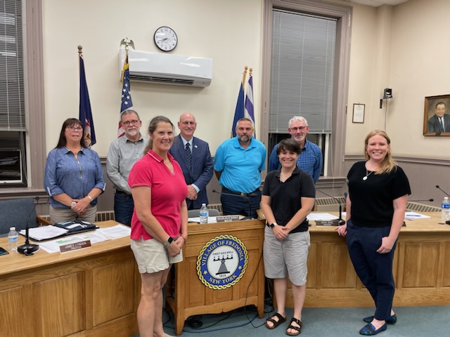 Submitted photo Members of the Fredonia Board of Trustees and Mayor Douglas Essek pose with organizers of the Feeding Fredonia Challenge during a recent trustees meeting, where a resolution of support for the challenge was approved.