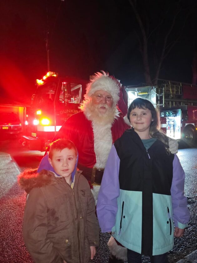 After receiving a call from the special helpers, the Dunkirk Fire Department sprung into action and rushed over to tend to Santa Claus. They learned of Santa’s trip to western New York with a sack full of gifts for the Curtin family, at which point Mia’s dad, Jim Curtin, and Mia’s younger brother, Jimmy, happened to drive by and witnessed the commotion.