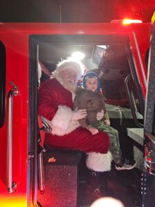 Mia, 9, witnessed her little brother ride in alongside Santa on the fire truck. She was shocked that her little brother was “kidnapped” by Santa Claus. She and her brother were in awe of the night’s events.