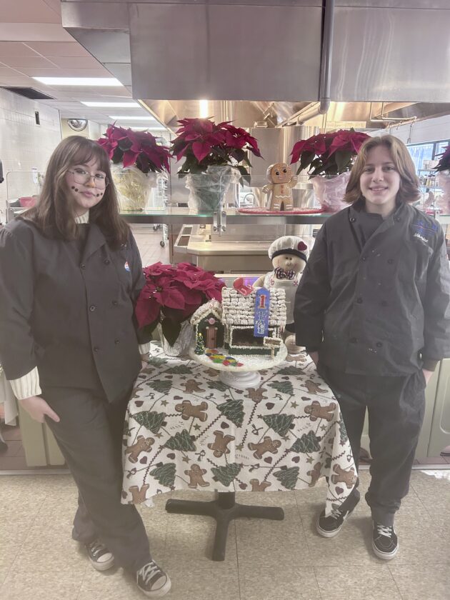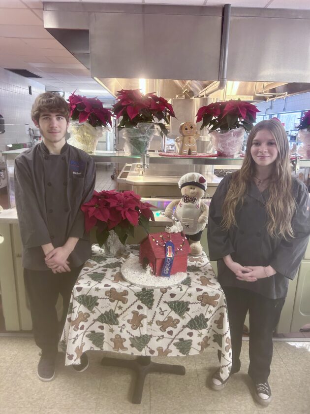 - Submitted Photos Pictured are Michael Myers, left, and Rhiannon Seminatore, right, who first place among the senior students of the Culinary Arts Gingerbread House competition at Erie 2 BOCES.