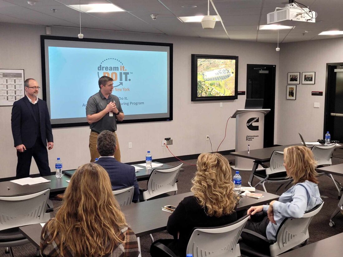 P-J photo by Christopher Blakeslee From left, Todd Tranum, the Manufacturers Association of the Southern Tier’s executive officer, and Shawn Hricko, manager for the Cummins Jamestown Engine plant, welcomed stakeholders and interested community members Wednesday for the launch of a "Dream It Do It" program.