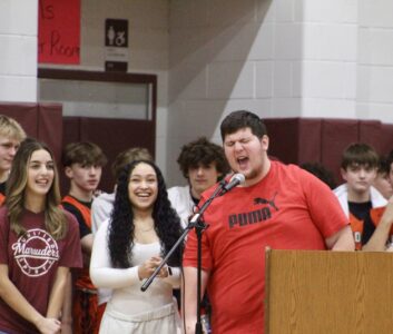 OBSERVER Photos by Braden Carmen Dunkirk student-athlete Mekiah Sedlacek recently spoke to a packed gym at Dunkirk High School about his experiences through Unified sports.