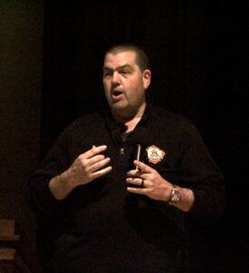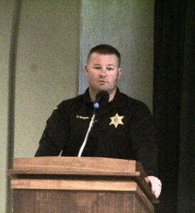 Guttman was introduced by Brocton Fire Chief Bill Hussey and was accompanied on stage by Chautauqua County Sheriff’s Deputy Chad Bargar and two New York State Troopers. Guttman’s presentation lasted approximately 45 minutes, followed by close to 20 minutes of a question-answer portion with the audience.