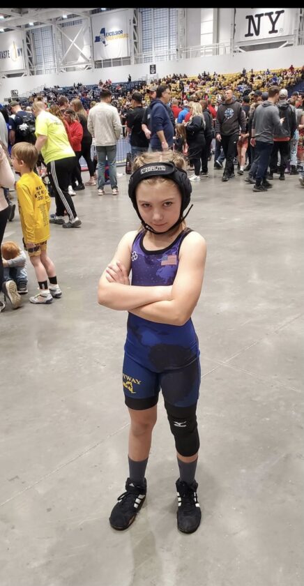 Lilly Burrows took first place at the New York Wrestling Association for Youth (NYWAY) State Championships earlier this month.