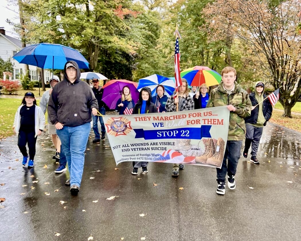 When the event began five years ago, organizer Deanna Borrello and the Silver Creek VFW designed a route around the village that would take 22 minutes to complete. At the time, an average of 22 veterans each day committed suicide nationwide. The month of October is highlighted by the VFW overseers at the state level as a time to raise awareness for the issue of veteran suicide.