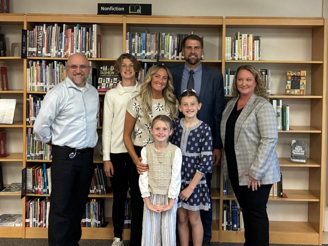 OBSERVER Photos by Owen Reed Rear row, from left, are Mike Ludwig, Chautauqua Lake Central School board president; Paxton Liddell, Dr. Joshua Liddell, Chautauqua Lake and Bemus Point central school superintendent, and Lauren Ryan, Bemus Point Central School board president. Front row, from left, are Chantelle Liddell, Palmer Liddell and Paesyn Liddell.