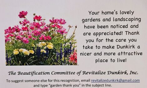 When Dunkirk residents think of Revitalize Dunkirk, Inc. most likely the beautiful hanging baskets come to mind. There is another important endeavor called the “Garden Recognition Postcards” recently celebrated at The Dunkirk Senior Center.