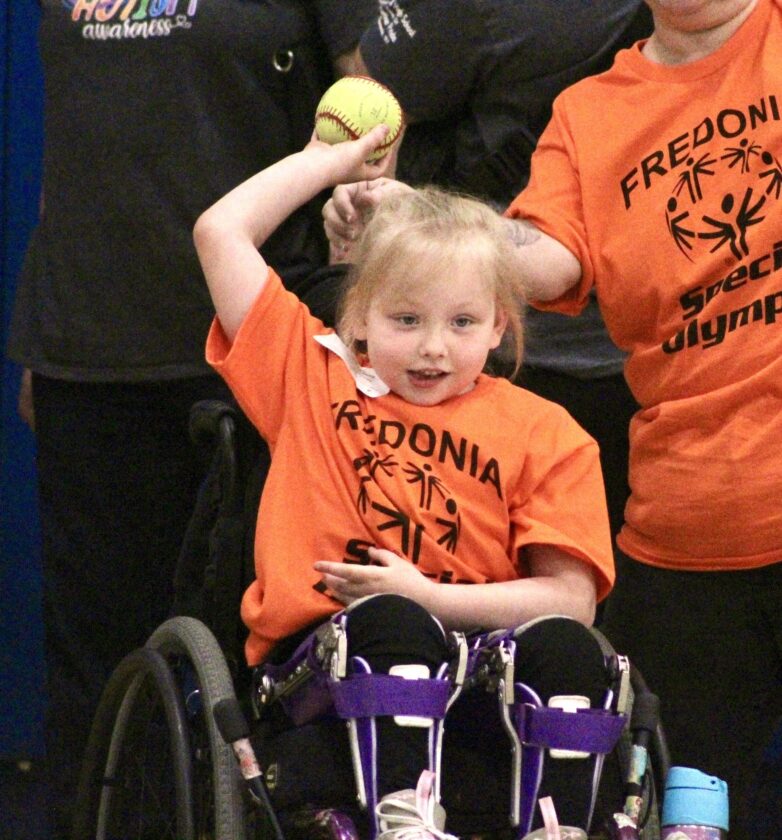 - OBSERVER Photos by Braden Carmen Elliana Leone, a Fredonia student, throws a softball at the Special Olympics at SUNY Fredonia.