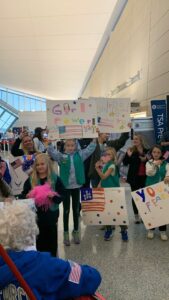 Pictured are some of the girls who held signs to welcome and honor the veterans at the airport during the all women Honor Flight.