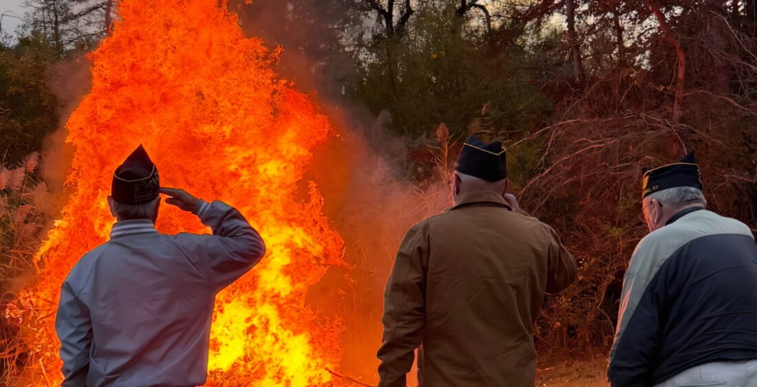 Last month, American Legion Post 59 held an American Flag Retirement Ceremony on Chautauqua Street to honor the national symbol and begin the process of respectfully discontinuing the service of thousands of flags obtained from their owners in the community.