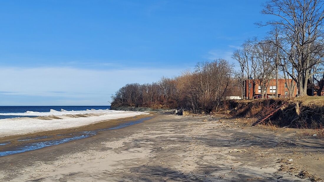 - OBSERVER Photos by M.J. Stafford Wright Park Beach in Dunkirk, with the city sewage treatment plant looming on the bluff above.