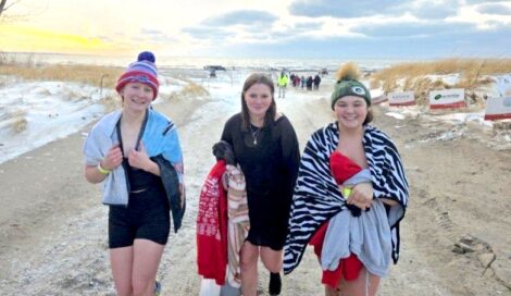 Forestville students Ali Kerstetter, Ellie Cross, and Kaylee Adamczak are pictured at the Polar Plunge.