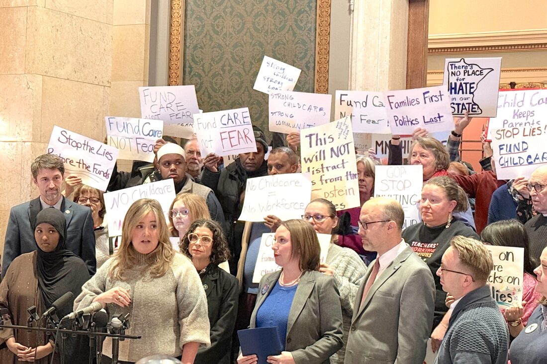 AP photo Maria Snider, director of the Rainbow Child Development Center and vice president of advocacy group Minnesota Child Care Association, speaks as people gather for a news conference at the state capitol in St. Paul, Minn., last week.