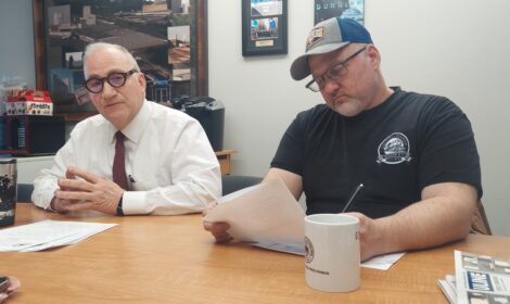 City of Dunkirk Planning and Development Director Vince DeJoy (left) sits with Councilman Mike Civiletto, the new chairman of the Common Council’s Economic Development Committee, at the committee’s January meeting.