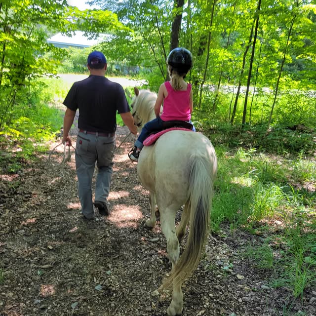 A ride through the woods as the horse, rider and leader all feel the peace and solitude as the sensory system peaks into the parasympathetic pathway for healing.