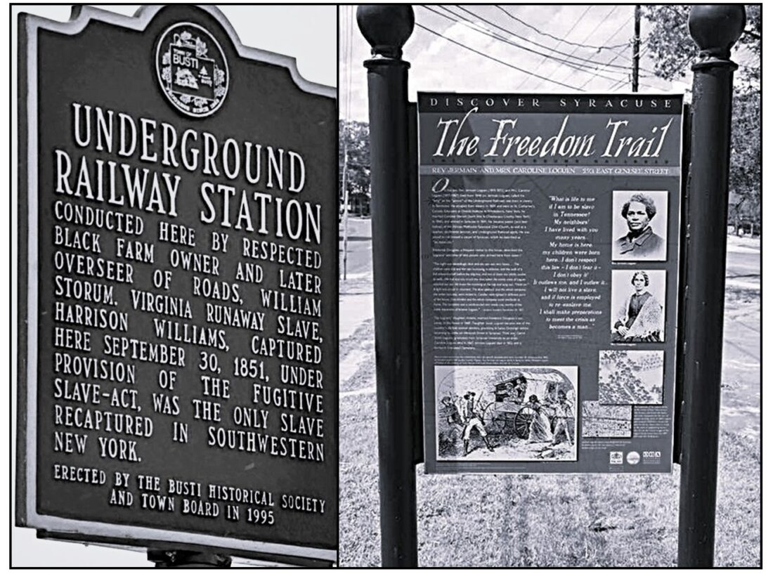 From left: The Storum/Williams marker in Busti NY; the Jermaine and Carolyn Loguen marker in Syracuse NY.