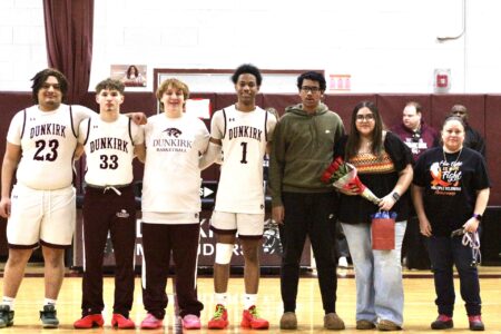 “I didn’t really know much about what she was going through until just prior to the season,” said K’vion Tell, Dunkirk’s leading scorer. “Seeing her get recognized was amazing to see.”