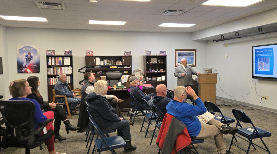 Photo by David Prenatt Ripley Central School Superintendent William Caldwell explains the details of a proposed Capital Improvement project to area residents at a public hearing.